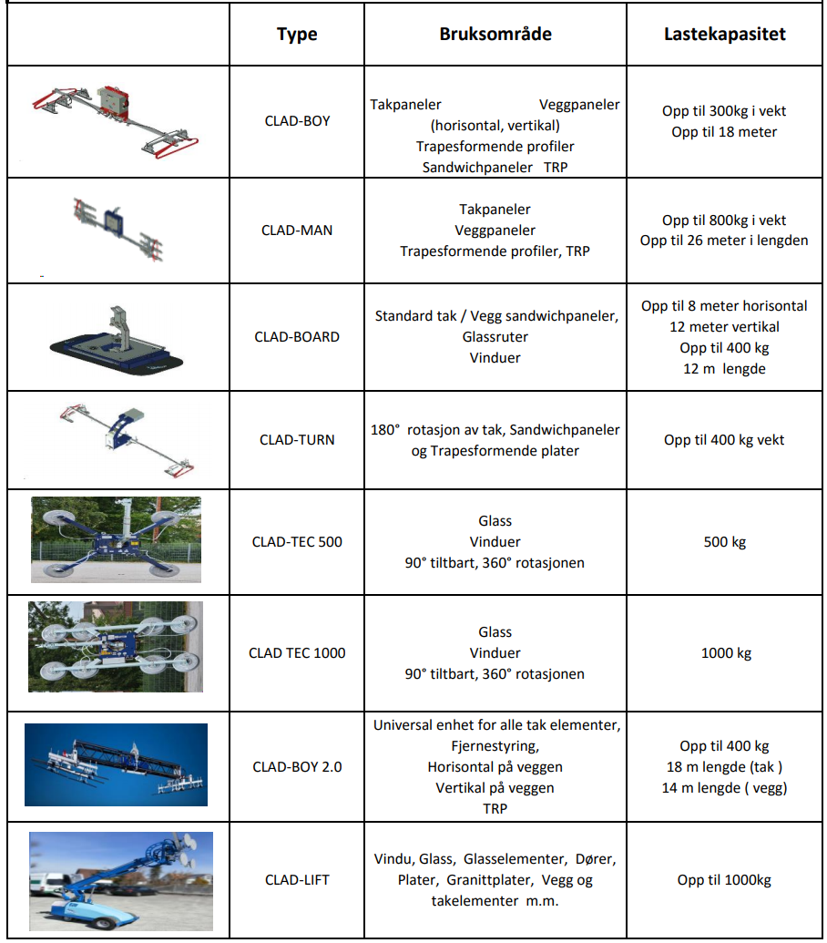Trenger du en vakuumløfter for løft av sandwitchpanel og glass? Har du en bestilling med svært lange paneler eller har du tenkt å installere tunge brannbeskyttelsespaneler? Vil du feste glassruten til en vinterhage og til tider trenger du en glassløft for å montere rutene? Lei en vakuumløfter til byggeplassen fra oss! Vi leier også ut våre monteringsenheter CLAD-BOARD, CLAD-TURN, CLAD-BOY, CLAD-BOY 2.0 CLAD-MAN, CLAD-LIFT og CLAD-TEC.